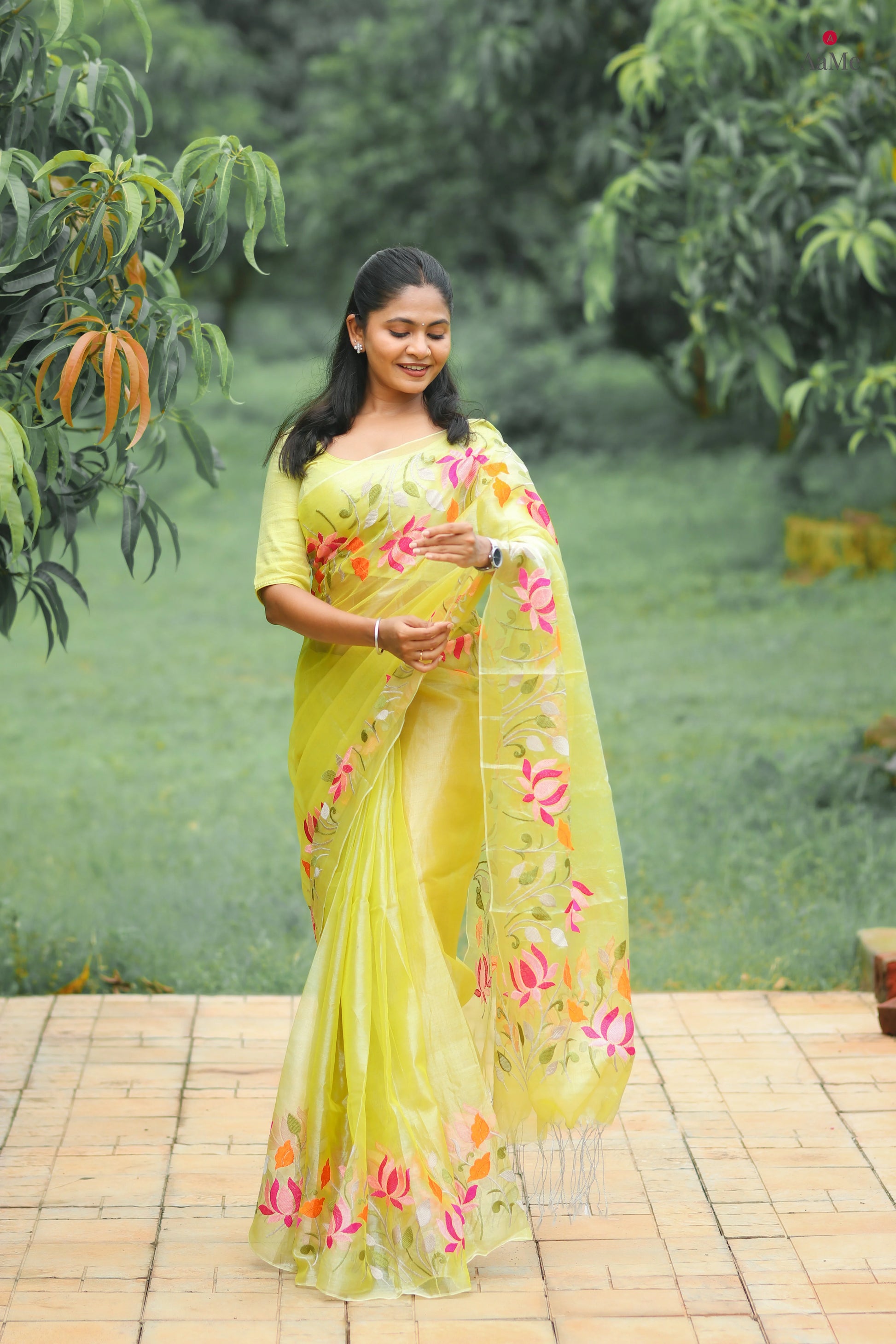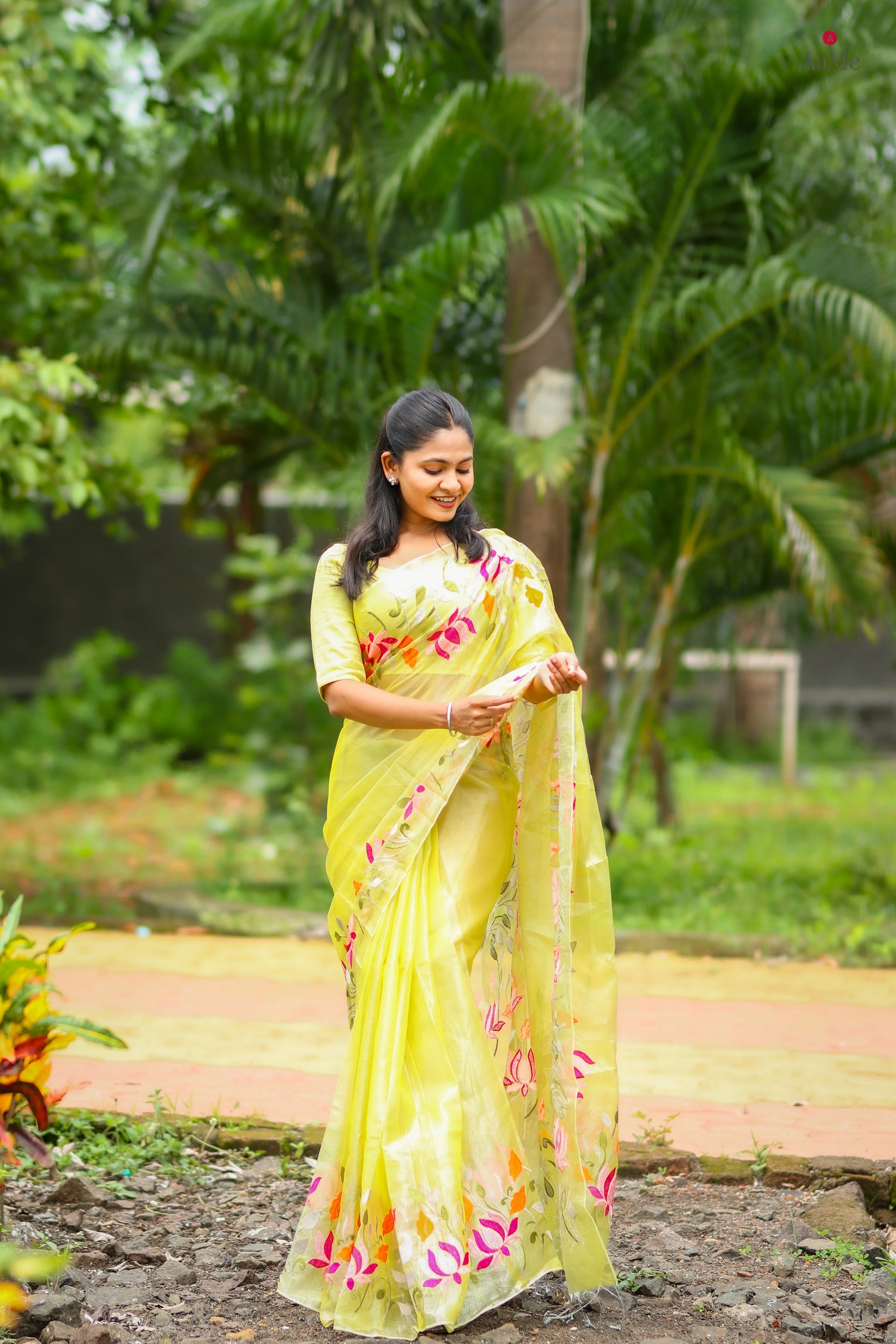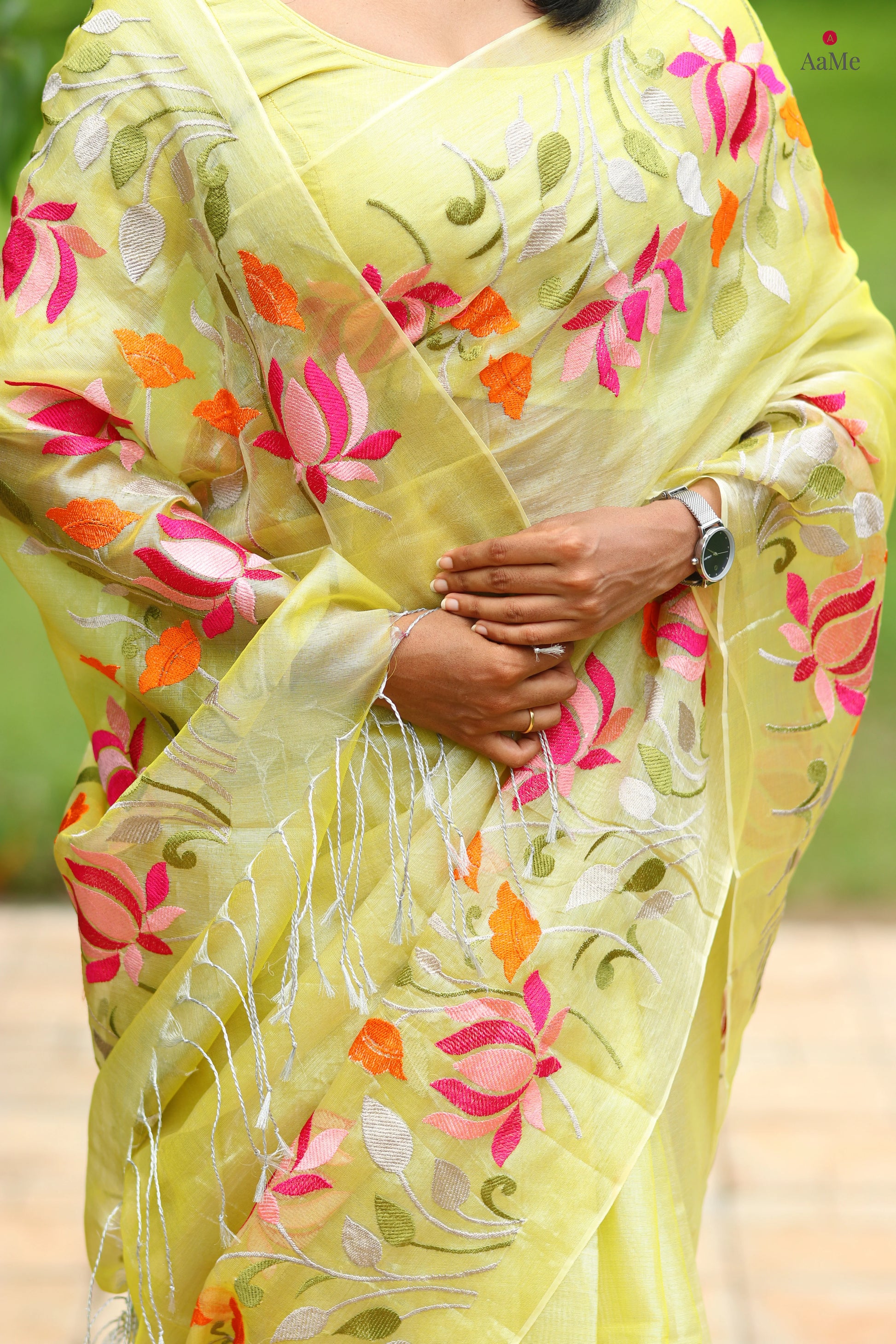 Border : Floral embroidery ( Embroidered using sewing machine )