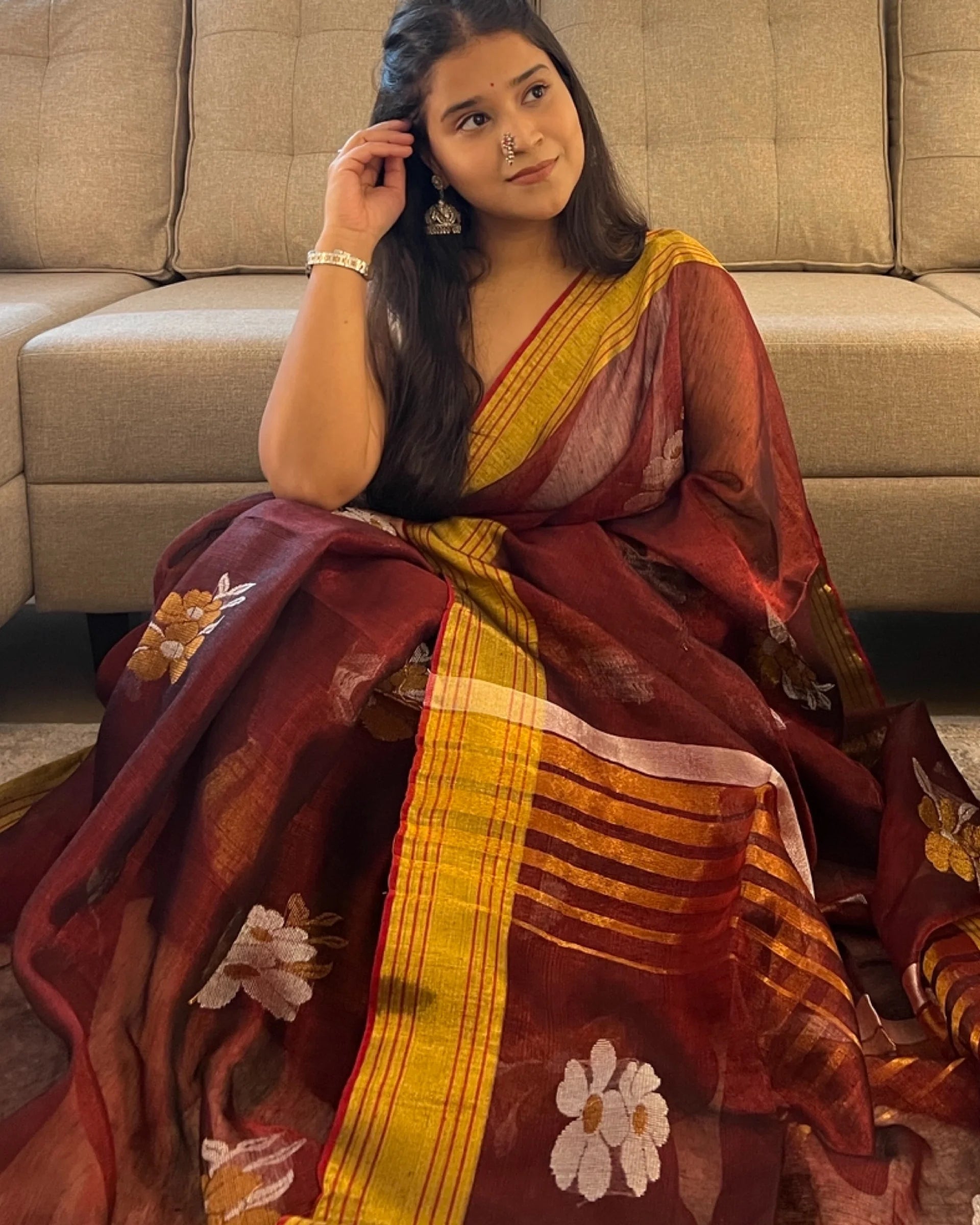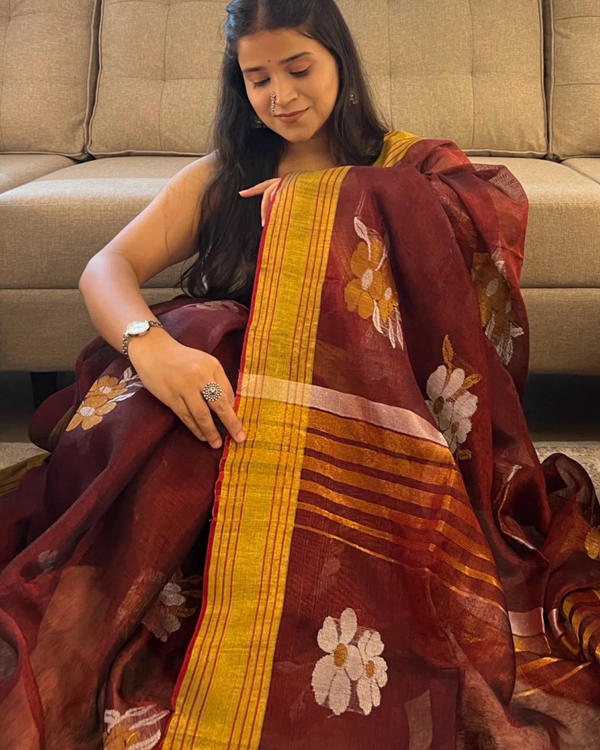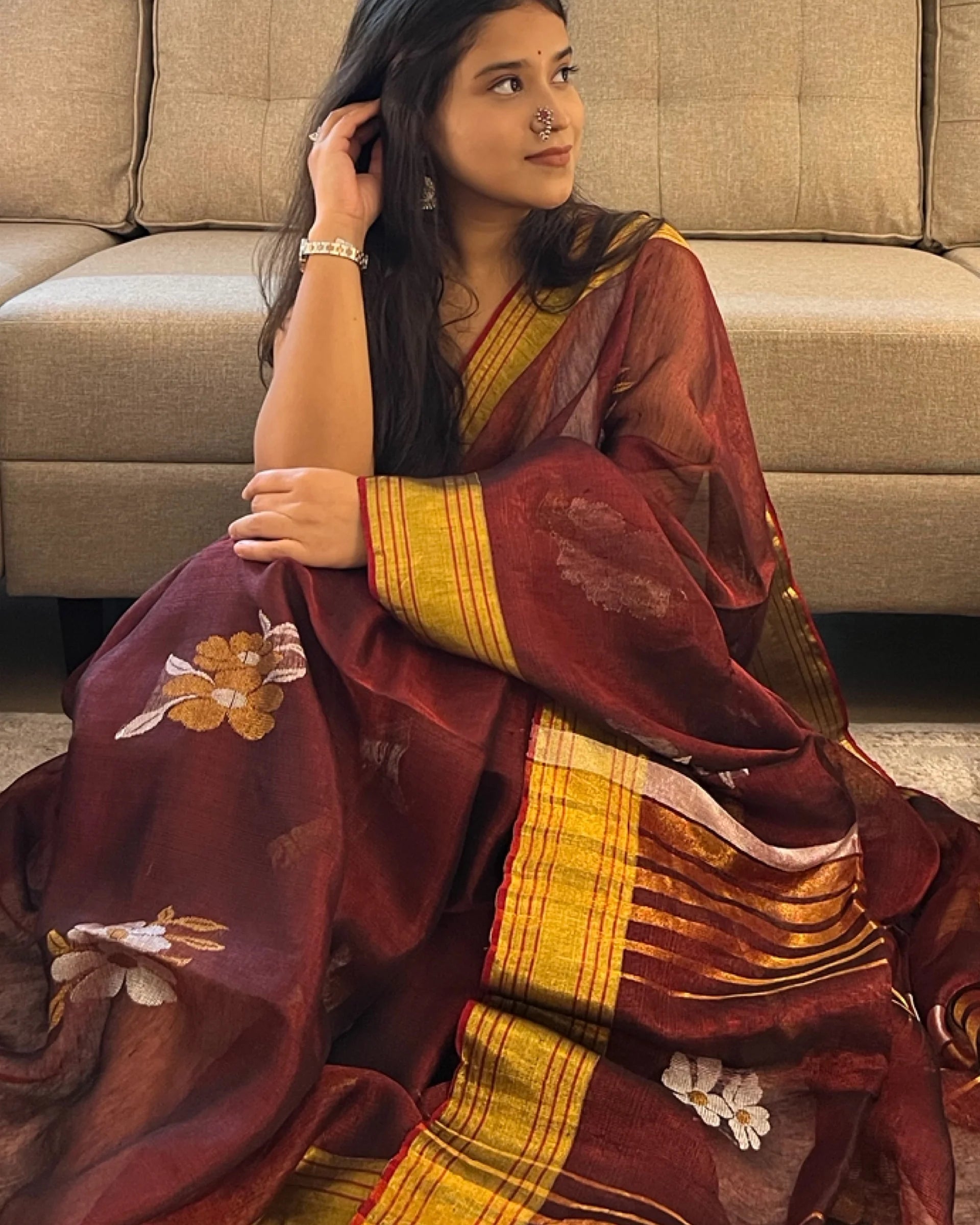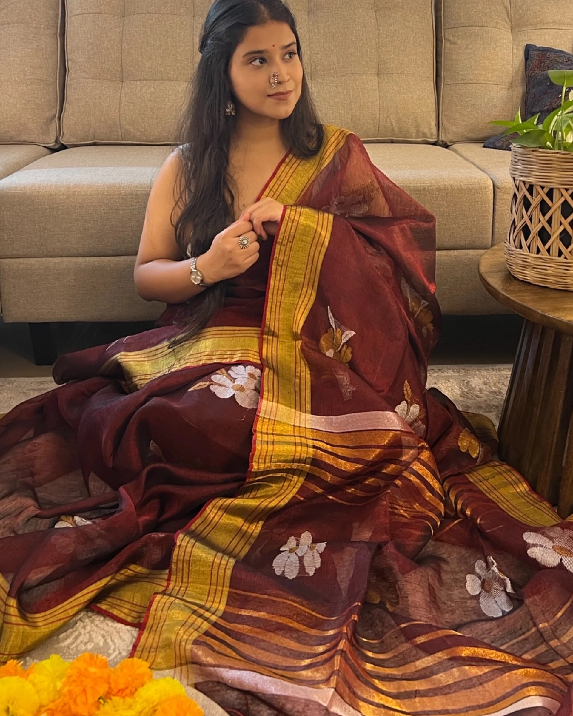 Immerse yourself in elegance and style, making it the perfect choice for the festive season or glamorous parties. Crafted to perfection, these sarees offer a seamless blend of comfort and glam. Elevate your look with the charm of zari motifs ensuring you shine bright at every occasion.