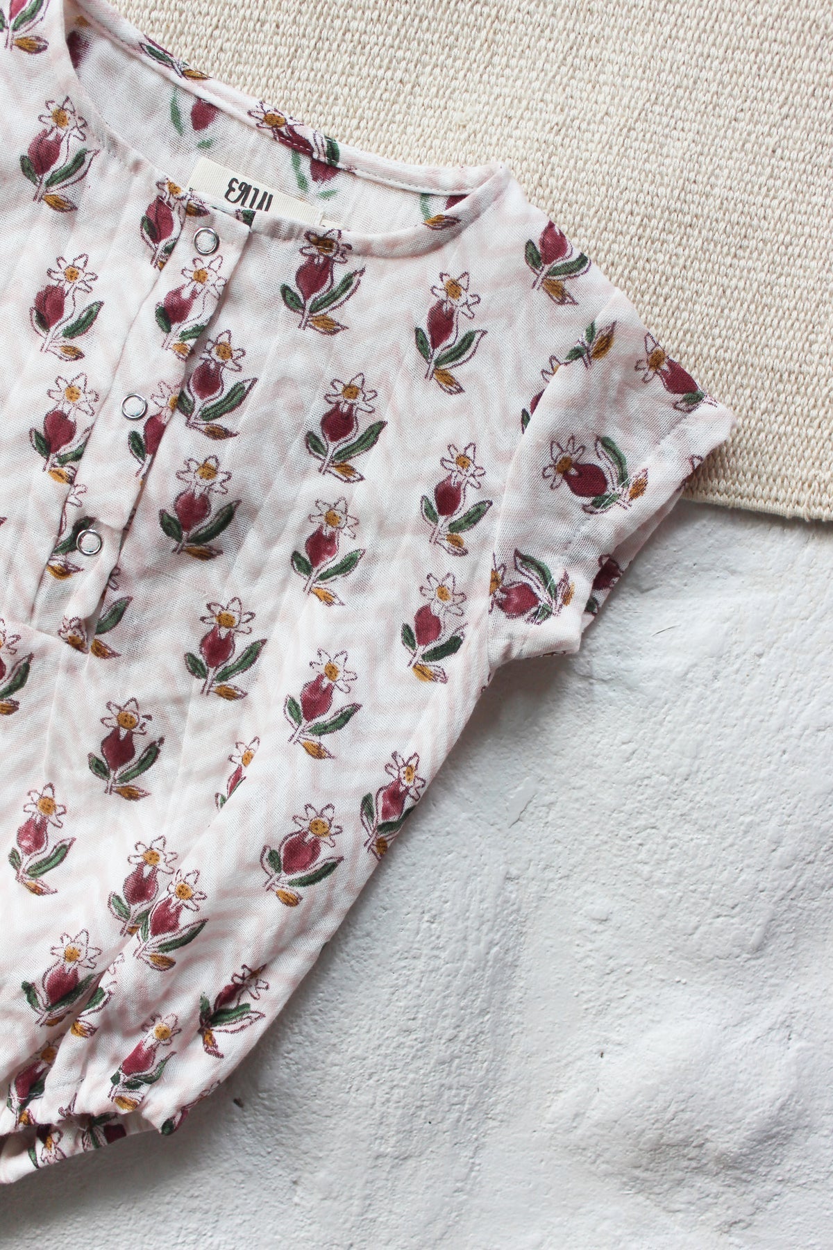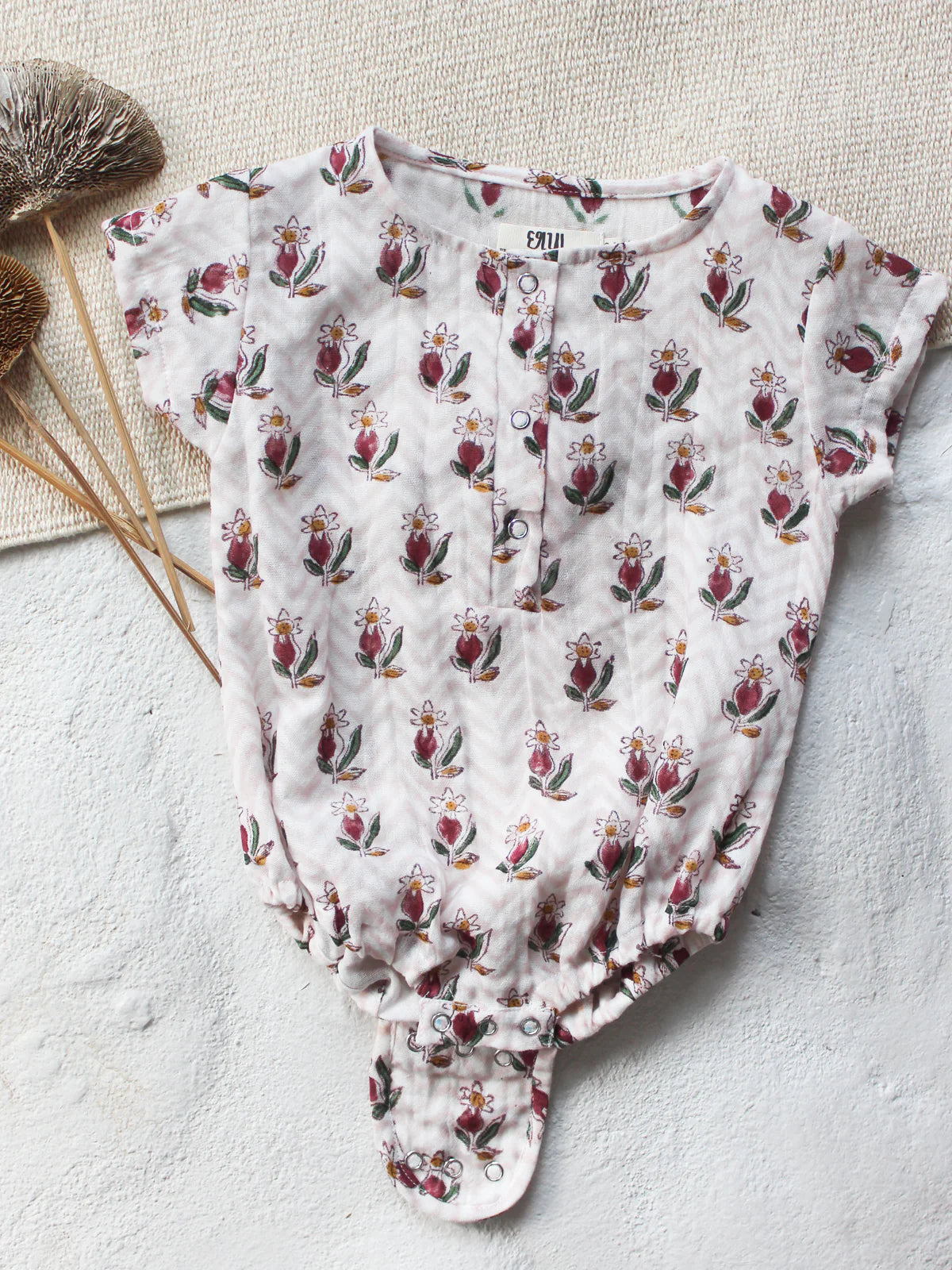 Cotton muslin soft fabric with Anar Print print on an all-over romper are perfect for any baby. Practical short sleeves, a round neck, and press studs at the crotch ensure easy dressing. Get ready to enjoy countless cute moments with your baby in these delightful rompers.