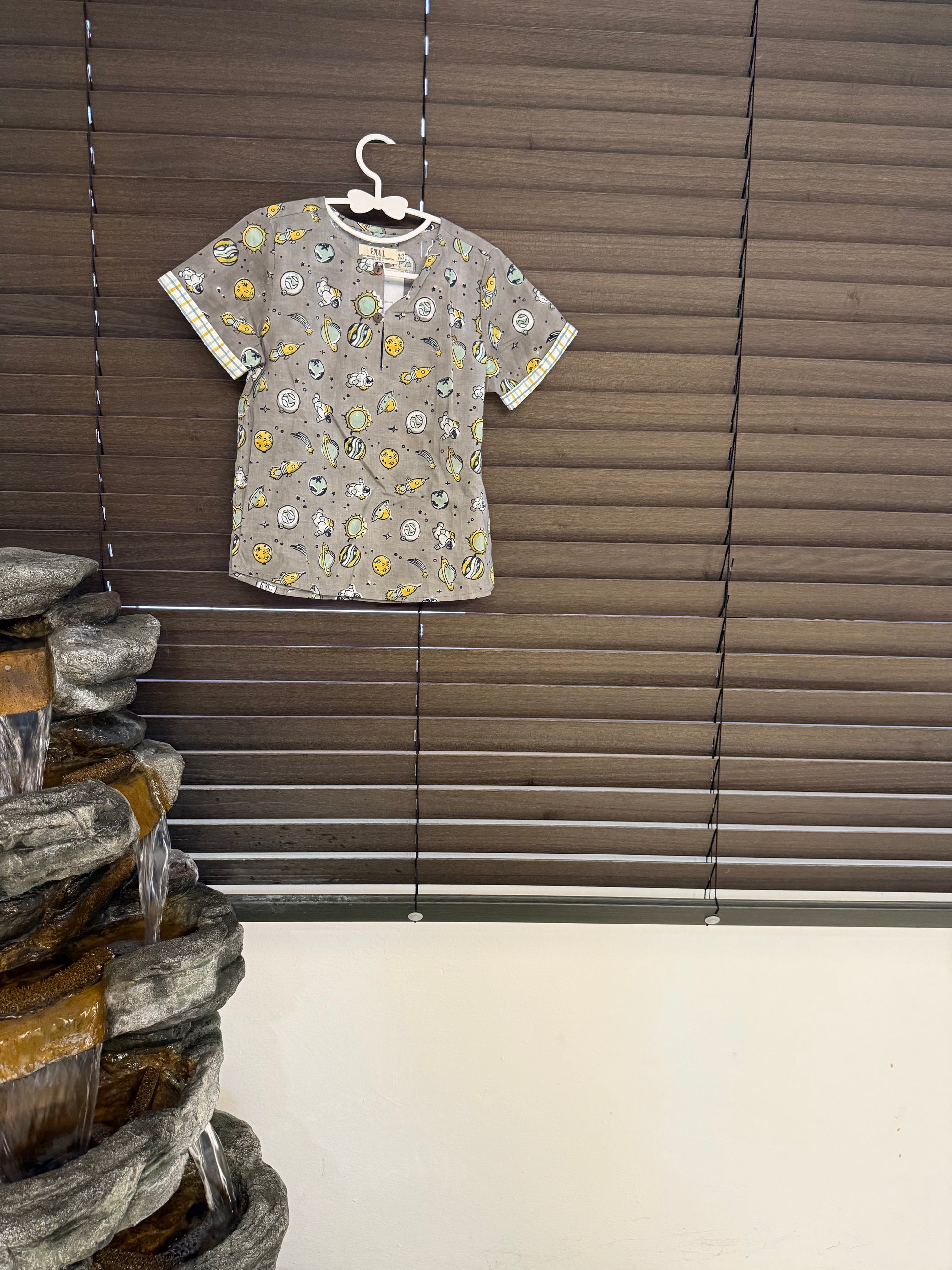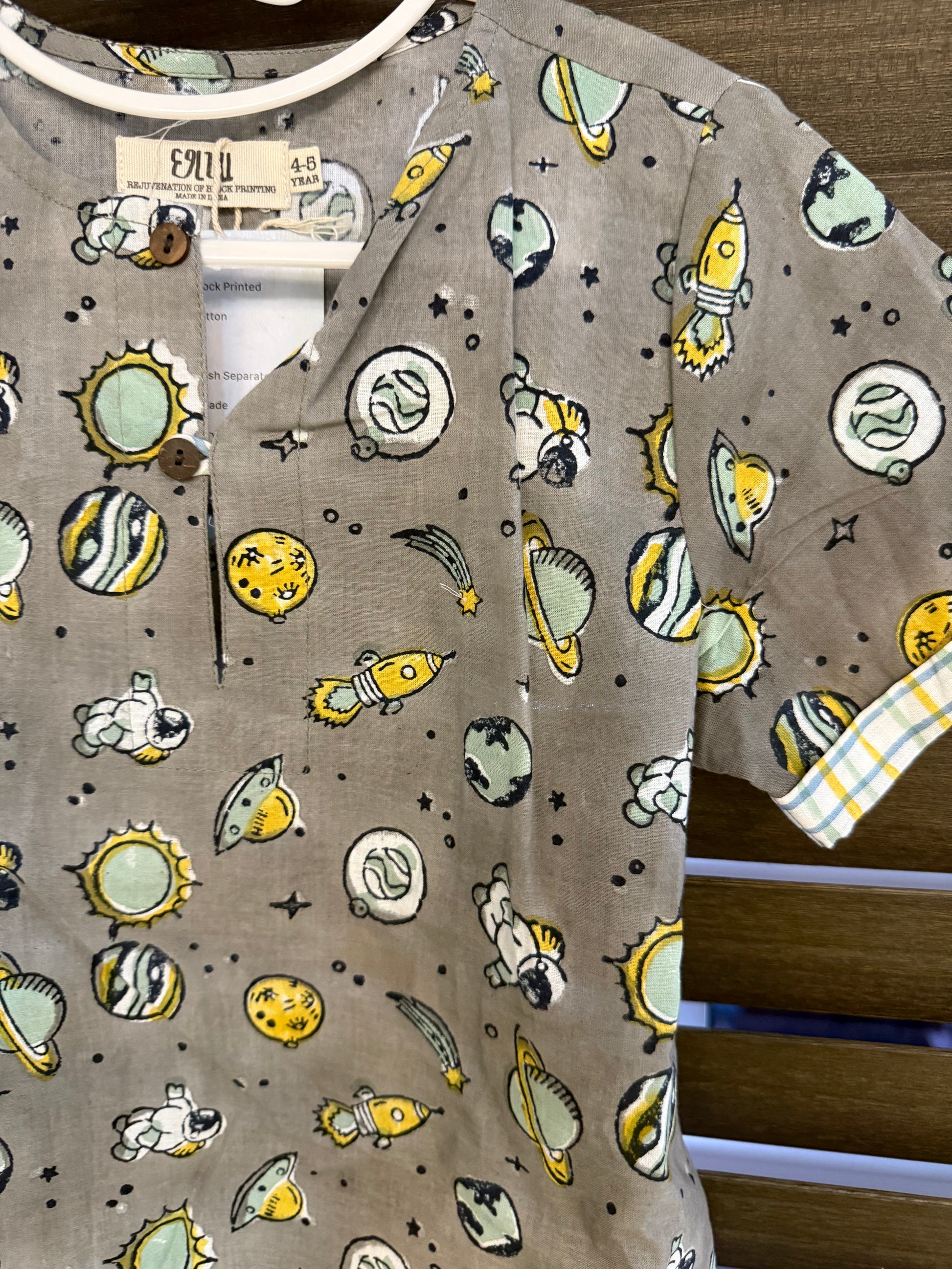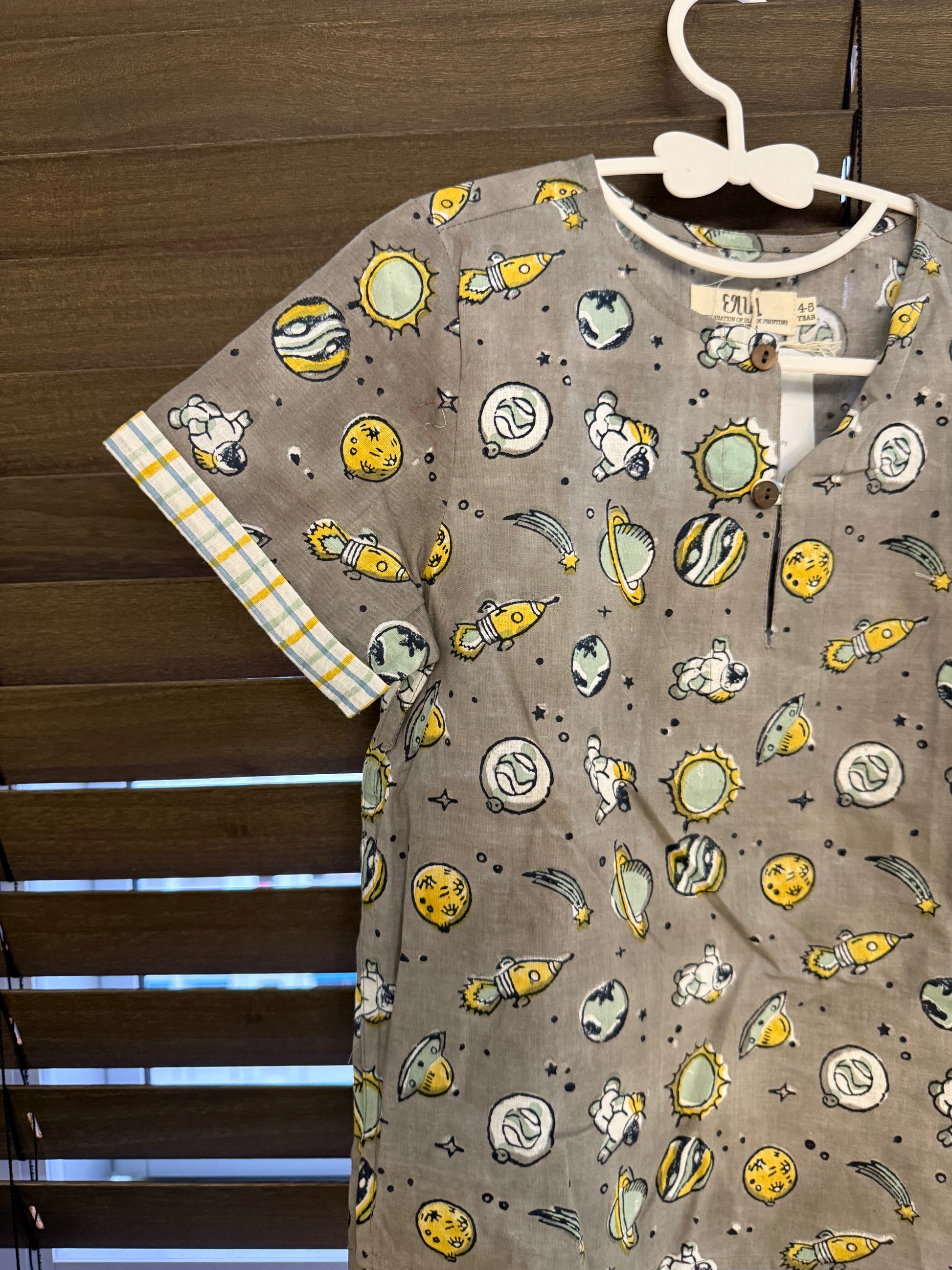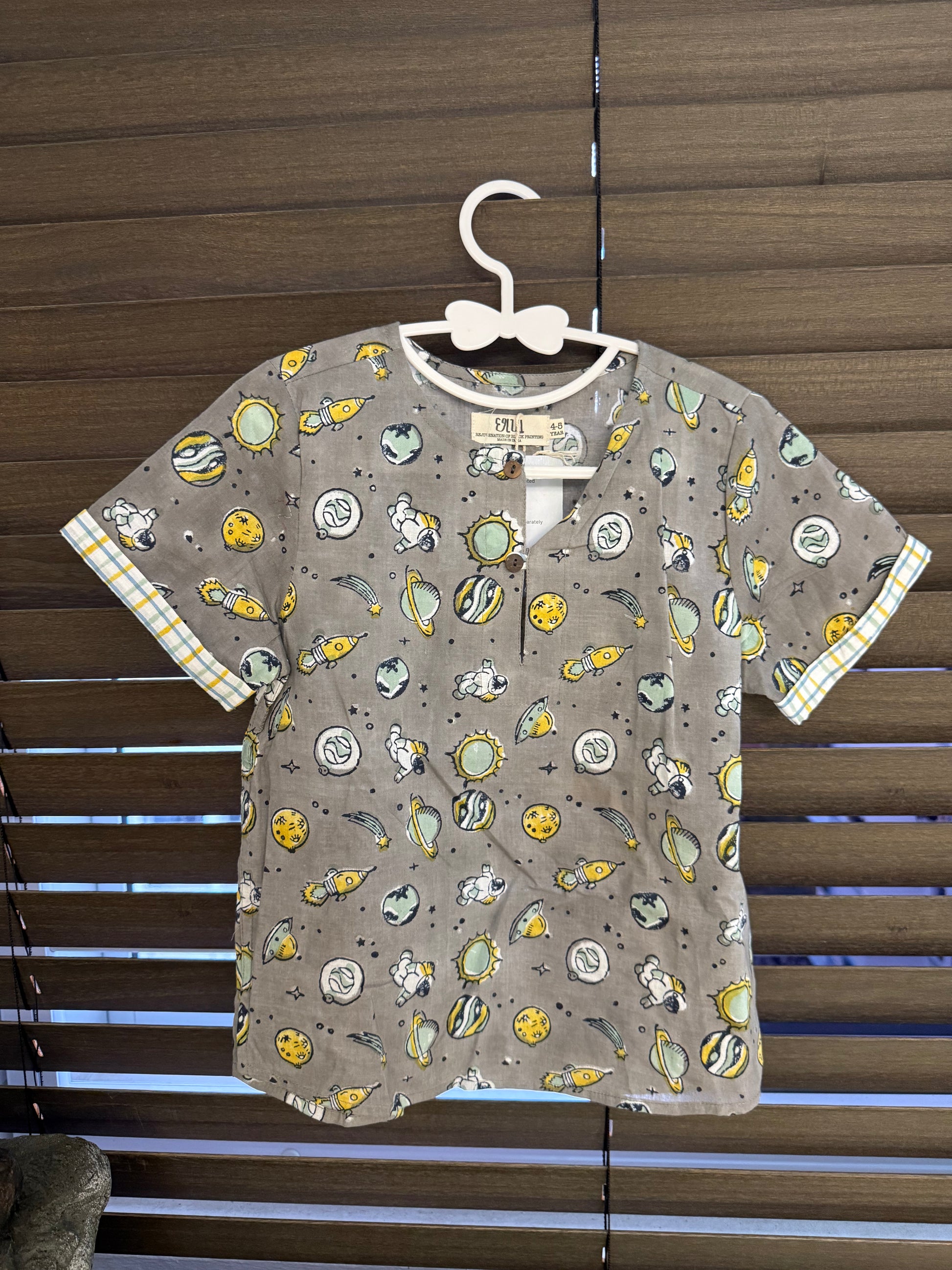 For the love of endless sky, roaming planets, & mysteries of space! The cute space theme doodled shirt will add some extra points to your OOTD. Style it with your favourite pair of denim or go casual with a comfortable pair of shorts for that effortlessly handsome look..