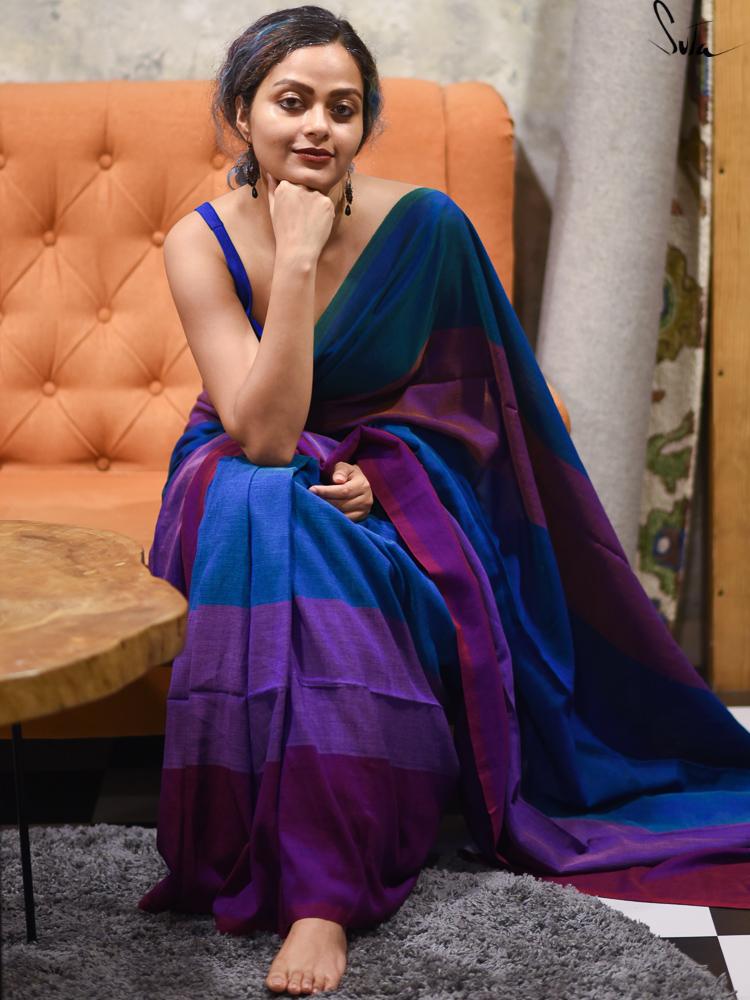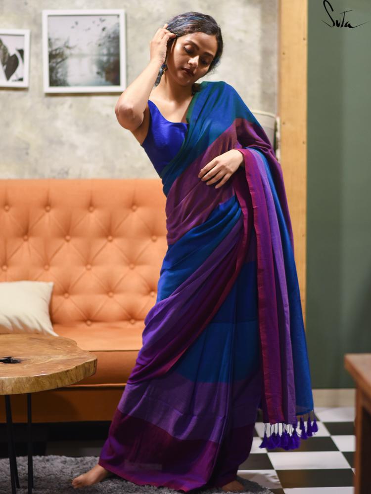 This beautiful saree in blue, pink and multicoloured hues is a must-have!